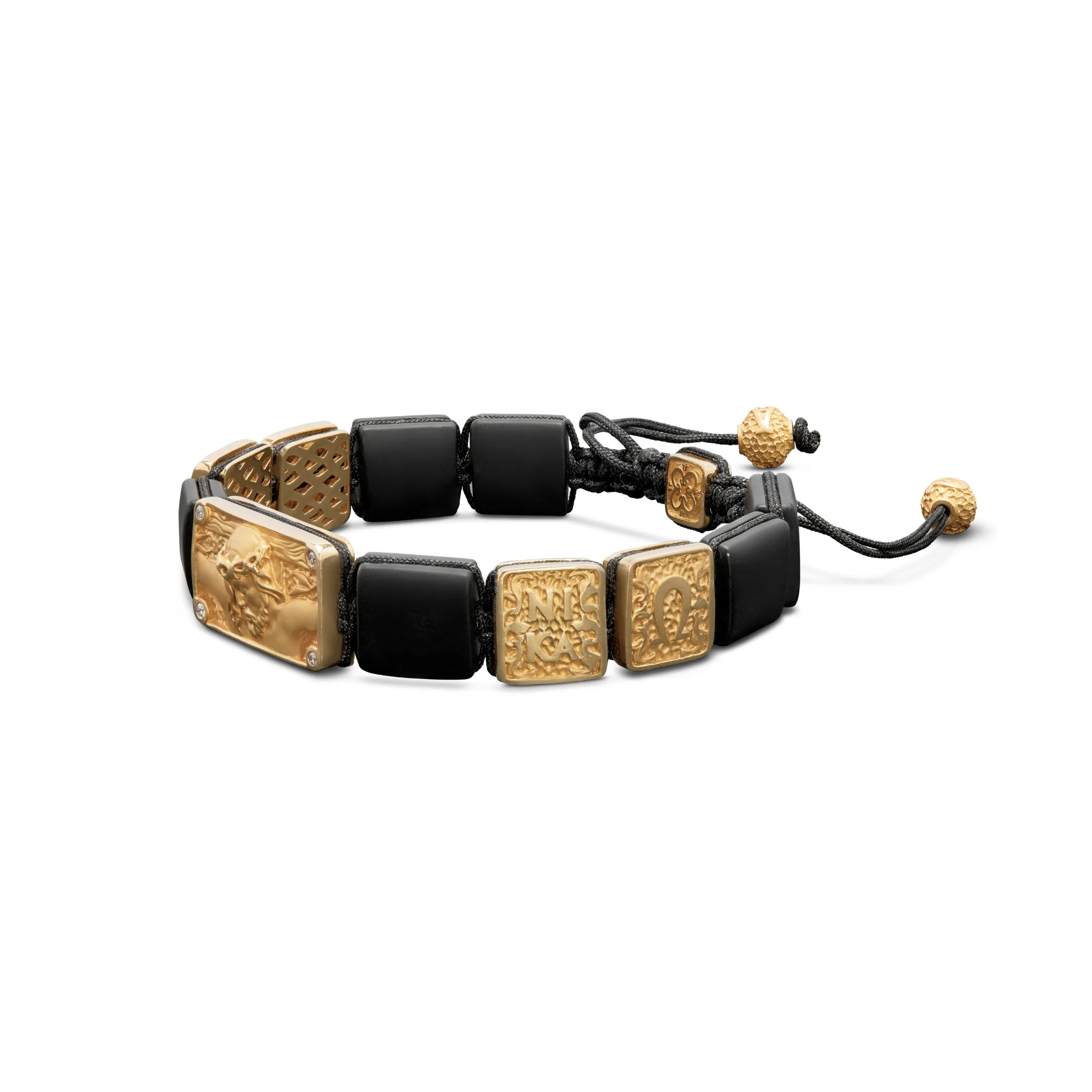 Βραχιολι Ιησους Χριστος Εσταυρωμενος σε 18Κ Κιτρινο Χρυσο, Ονυχα και Λευκα Διαμαντια