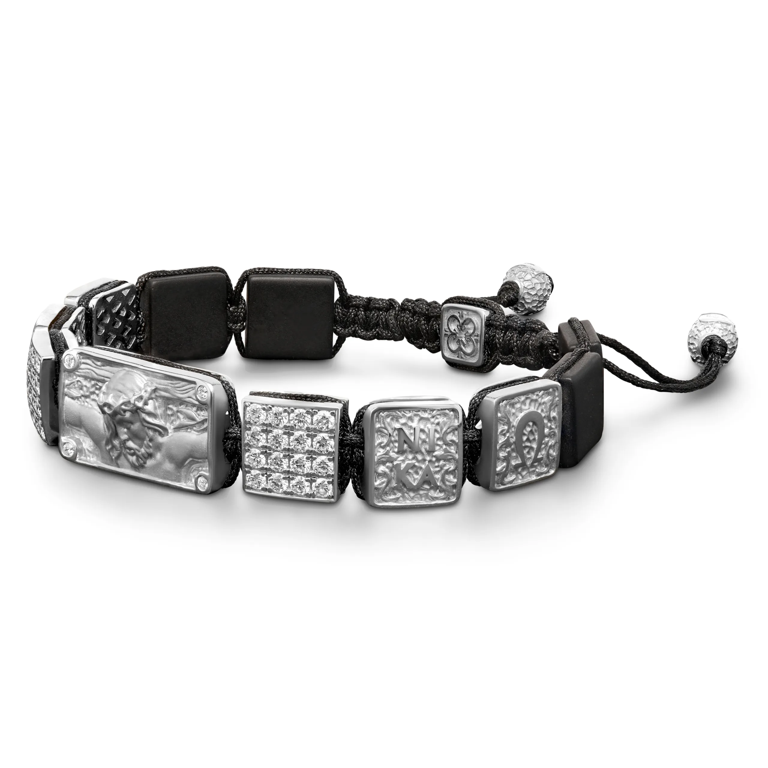 ΒΡΑΧΙΟΛΙ ΙΗΣΟΥΣ ΧΡΙΣΤΟΣ ΕΣΤΑΥΡΩΜΕΝΟΣ ΣΕ 18Κ ΛΕΥΚΟΧΡΥΣΟ, ΟΝΥΧΑ ΚΑΙ ΛΕΥΚΑ ΔΙΑΜΑΝΤΙΑ
