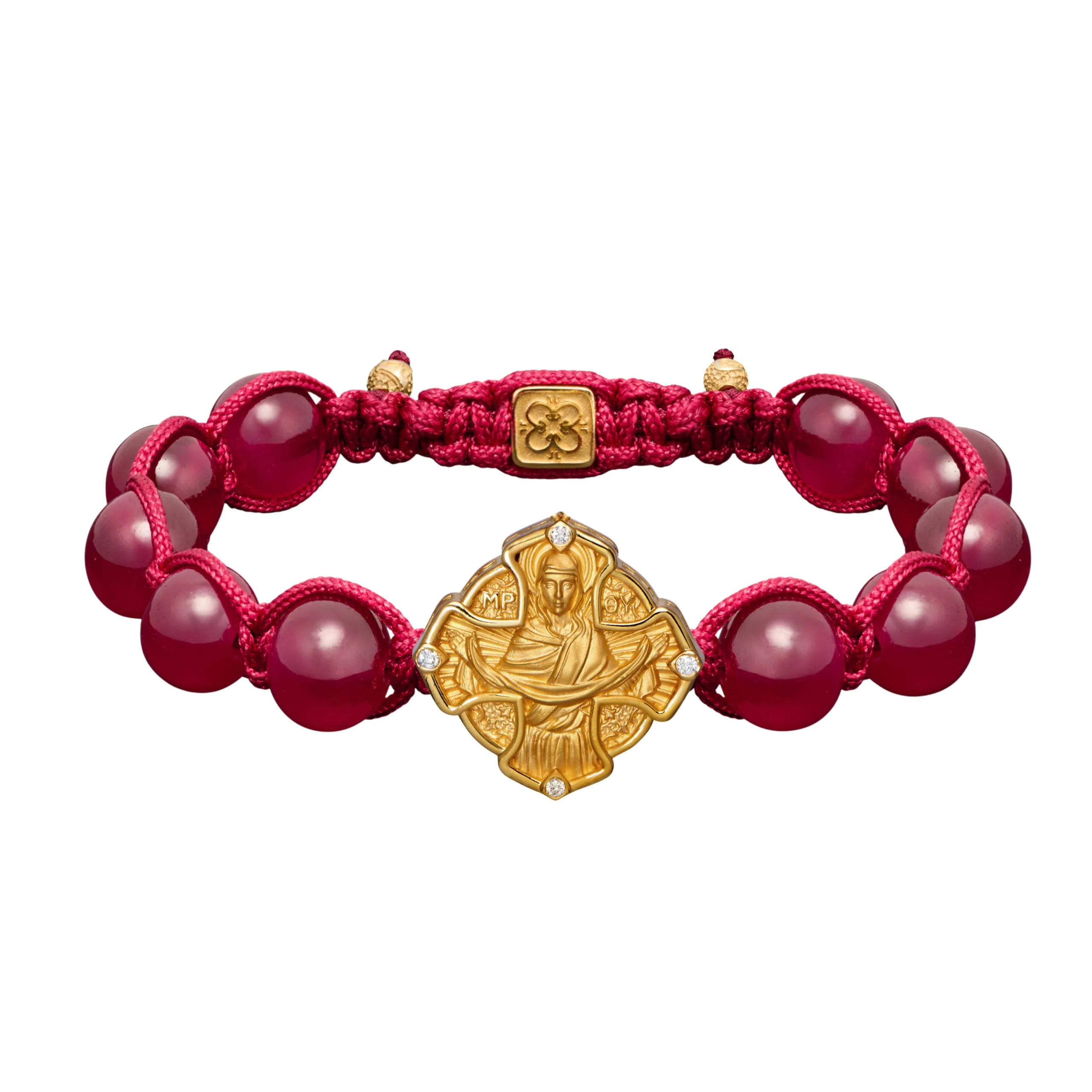 ΑΝΑΖΩ Bracelet Cross Virgin Mary, Holy Belt in Yellow Gold 18K, Diamonds 0,04ct and Ruby