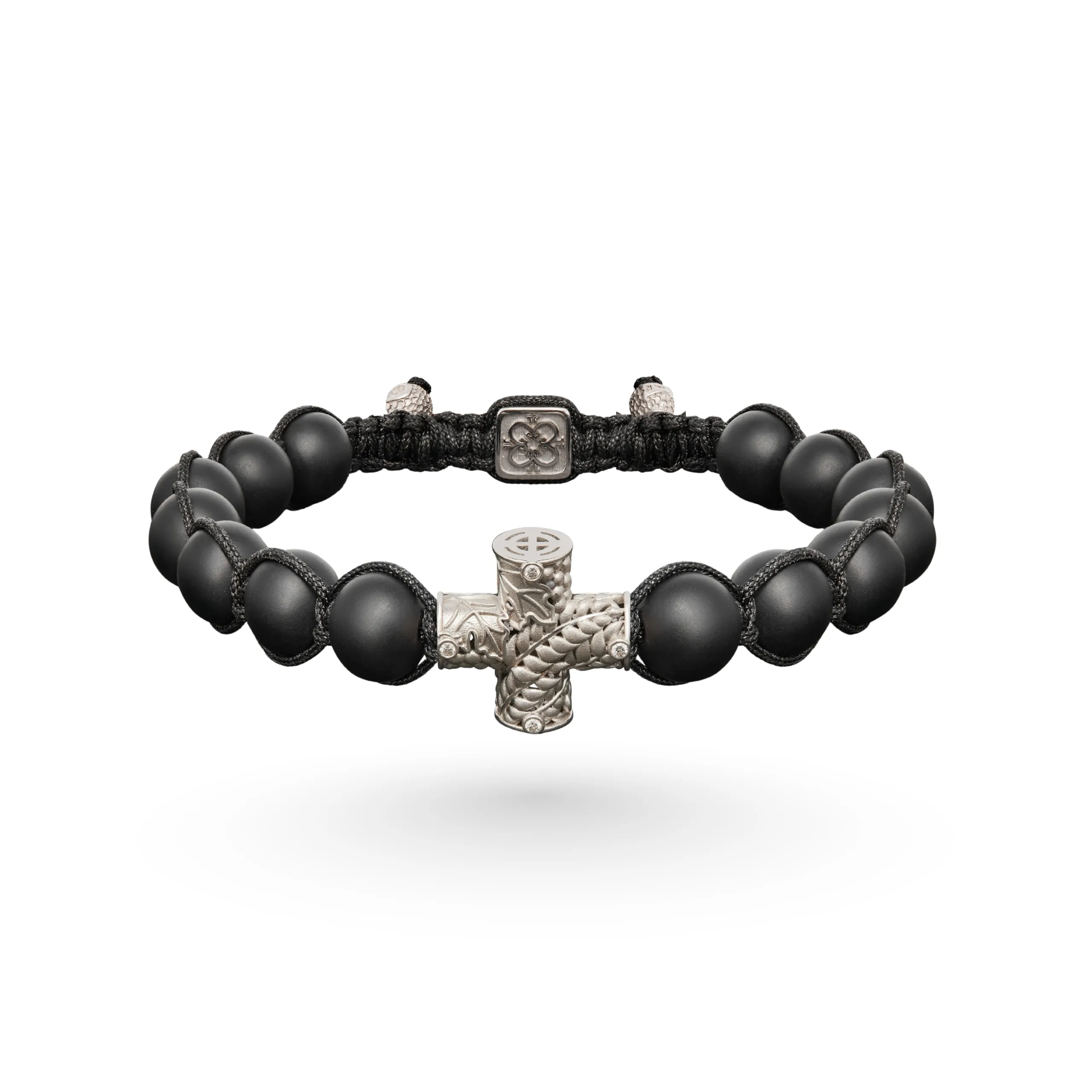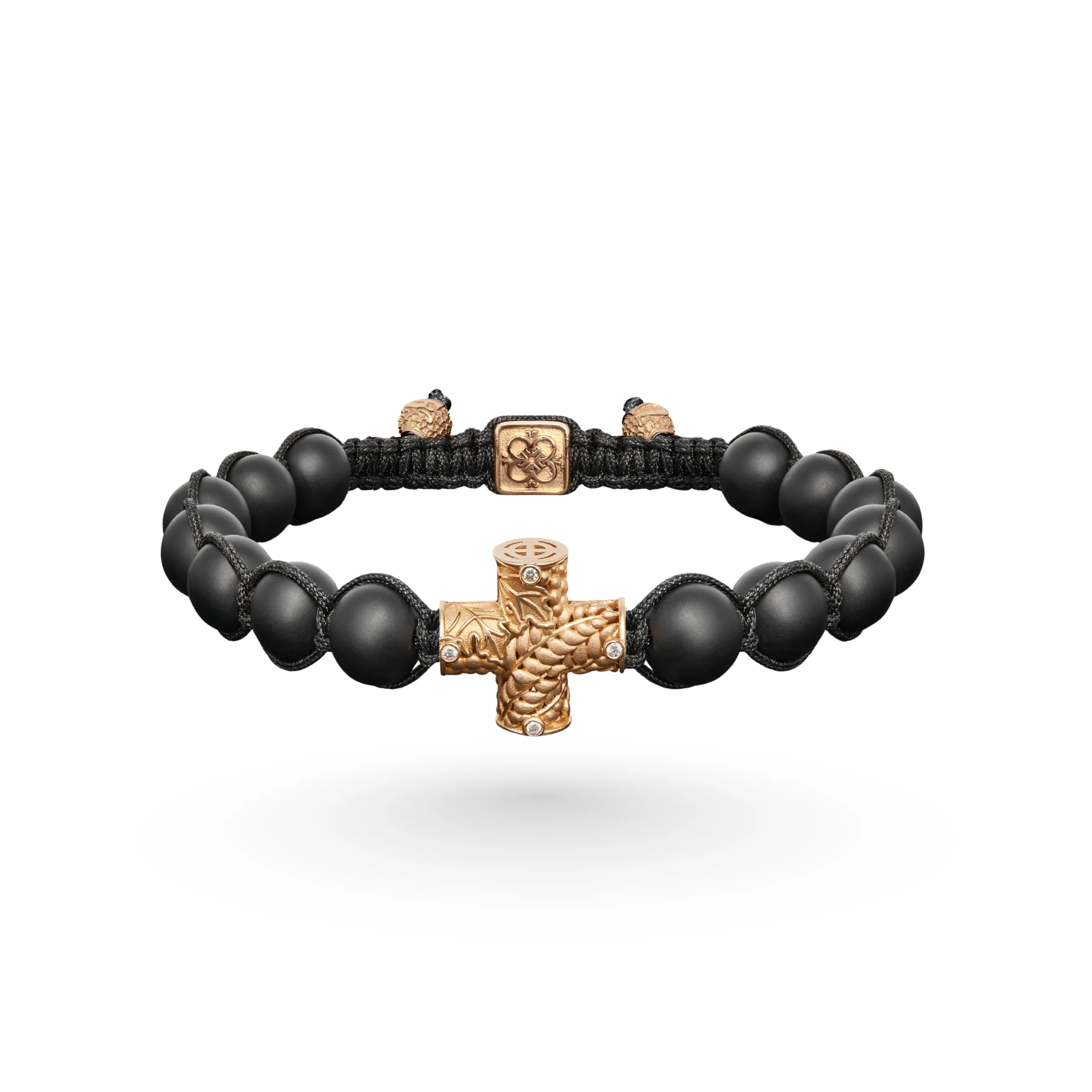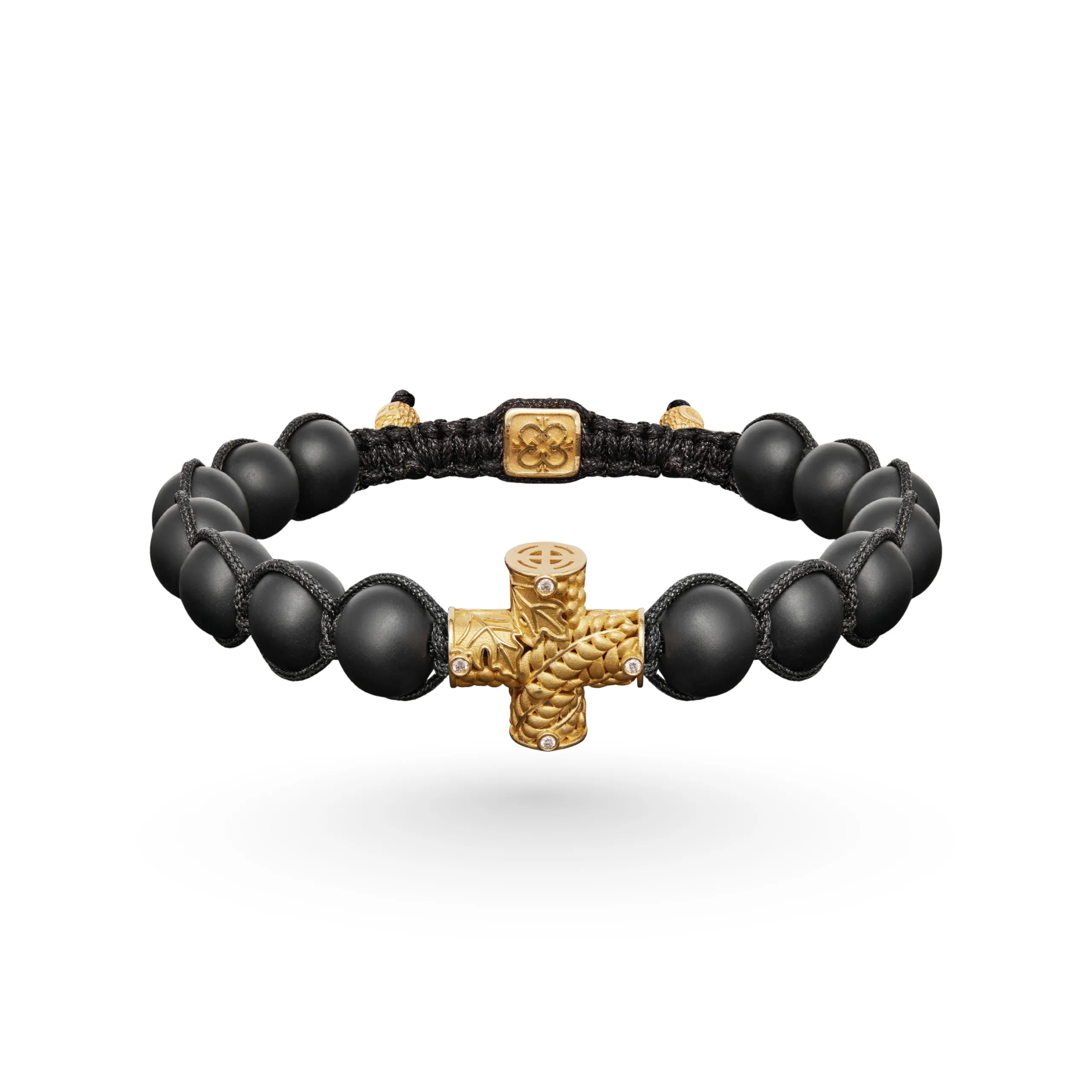 ΑΝΑΖΩ Bracelet Cross, Gold 18K, Rounded Onyx & Diamonds