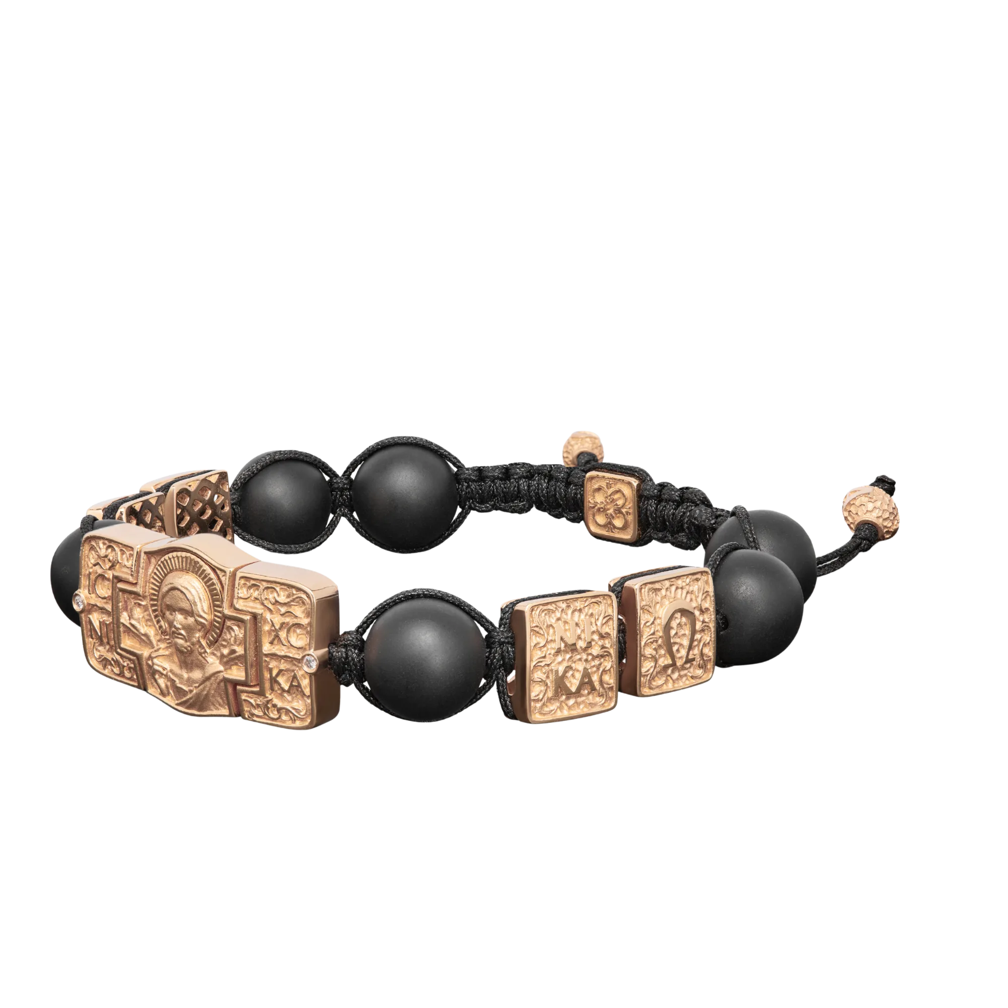 Jesus Christ Pantocrator Bracelet in 18K Yellow Gold, Diamonds and Squared Black Onyx