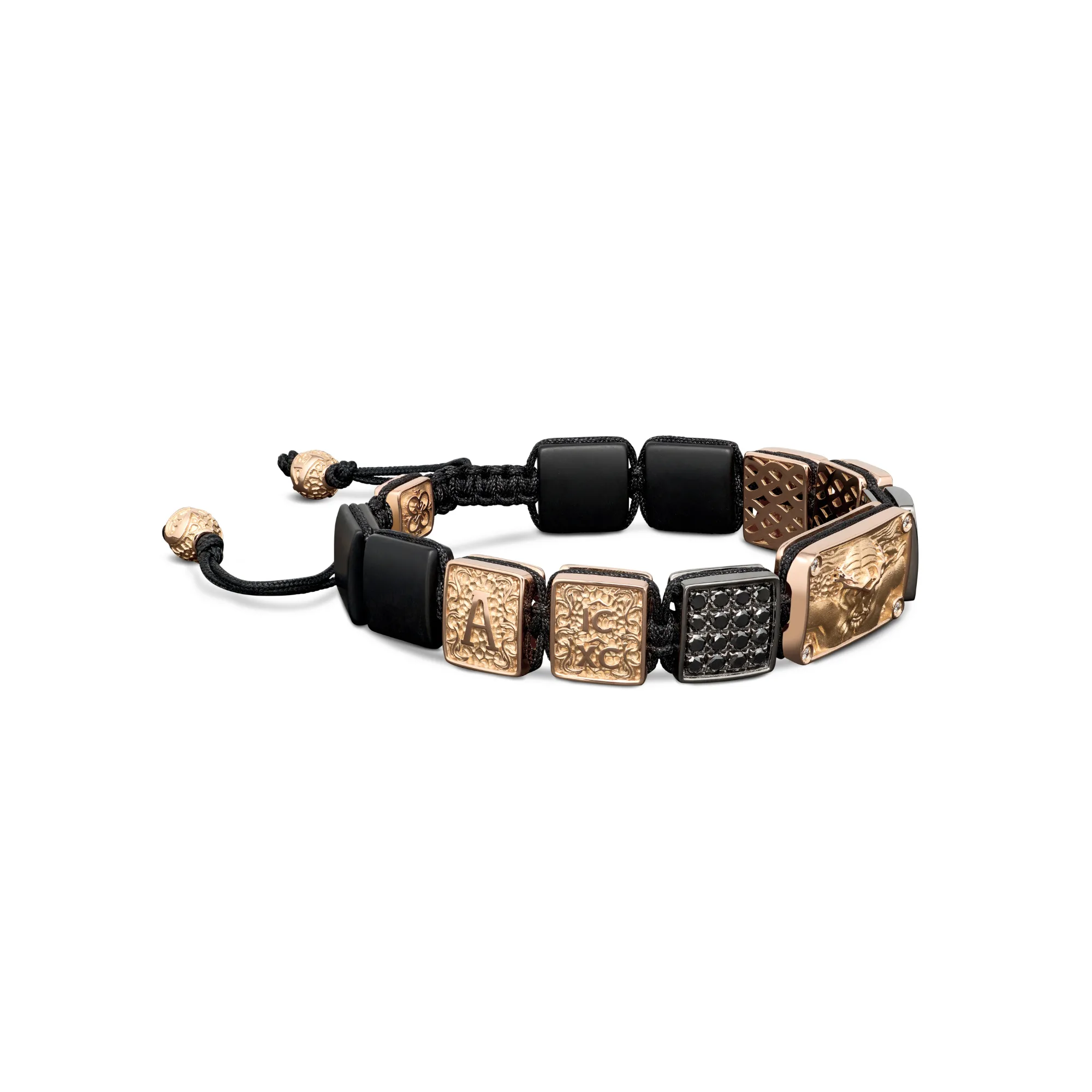 Браслет с изображением распятого Иисуса Христа, выполненный из 18-каратного розового золота, белых и черных бриллиантов и квадратного черного оникса